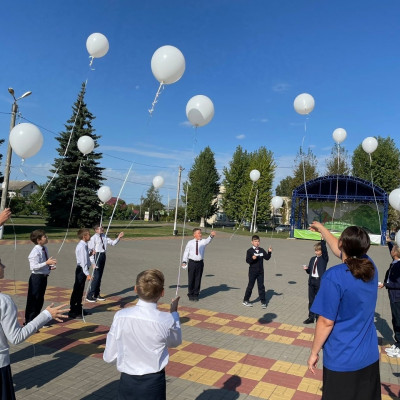 В память о жертвах теракта ребята выпустили в небо белые шары.
