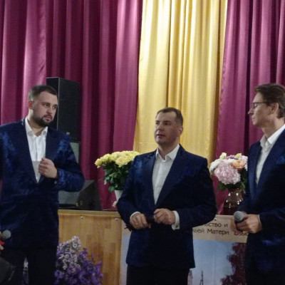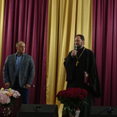 Приветственные слова со сцены прозвучали от главы администрации Терновского муниципального района Павла Чибисова . Павел Викторович вручил благодарственные письма солистам группы и отцу Сергию, поздравив его с юбилеем.