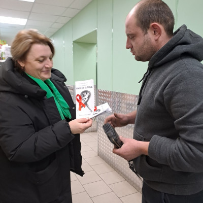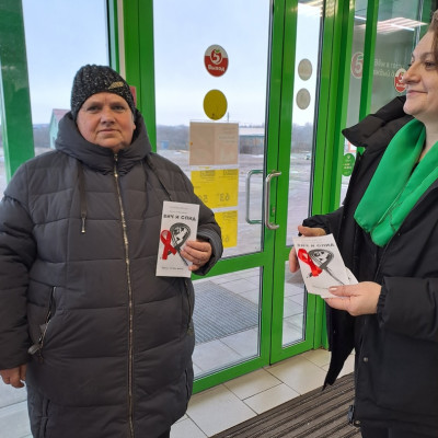 Волонтёры рассказали, что ленточка цвета крови, свёрнутая петелькой, является Международным символом борьбы со СПИДом — символом нашего сострадания, поддержки и надежды на будущее.