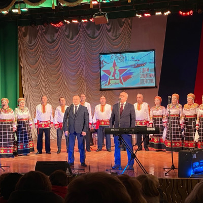 На протяжении всего вечера со сцены звучали теплые поздравления в адрес мужчин, были патриотические музыкальные номера.
