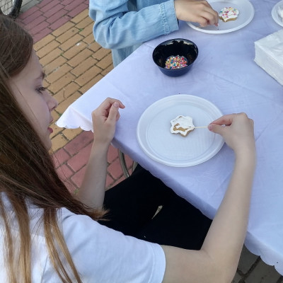 Мастерицы из Детской школы искусств разукрашивали желающих аквагримом.