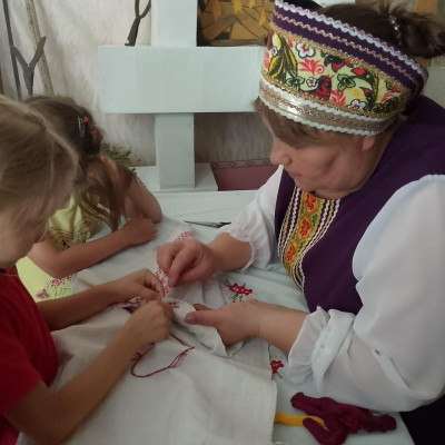 Ведущая познакомила детей с историей возникновения рушников на Руси, его предназначение, с различными видами вышивки, которые придавали ему особый колорит. На мероприятии ребята узнали весь процесс изготовления рушника: от посева льна до украшения его необычными узорами, различные приметы и обычаи, которые окружают рушники. Ведь в старое время рушник сопровождал человека от рождения до самой смерти. Его очень ценили, хранили, передавали по наследству.