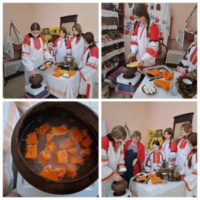 29 ноября в уголке крестьянского быта Козловского СДК состоялся мастер – класс по приготовлению «Тыквенной каши". Руководитель кружка "Берегиня" Давыдова С.А. вместе с гостями приготовили кашу из тыквы и пшена, а также узнали, что из тыквы можно приготовить и салаты, и супы, и даже десерты.