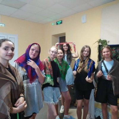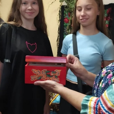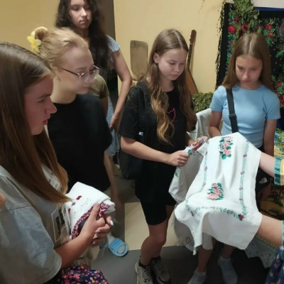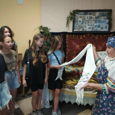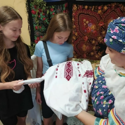 Девочки с удовольствием и интересом перебирали старинные вещи и с восхищением разглядывали вышивку и украшения из старинного сундука.