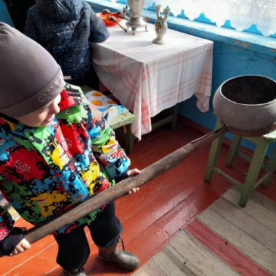 Создание интерьера " Русская изба" даёт возможность ребёнку поиграть" во взрослую жизнь" в исторической обстановке.Дети с удовольствием рассматривали посуду.А сколько было восторженные и удивлённых взглядов,когда увидели люльку для младенца.Пробовали носить ухватом чугун, крутили колесо у прялки.Только увиденное своими глазами, обыгранные в процессе игры, эти вещи становятся знакомыми и узнаваемыми.
