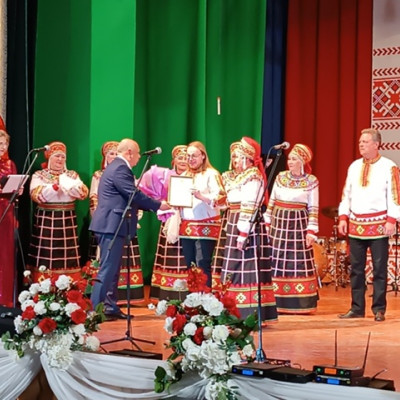Руководитель отдела по культуре Н.В. Колмакова поздравила хор и пожелала коллективу процветания, поблагодарила за привлечение внимания к поистине русской культуре, олицетворением которой является и народная песня. За большой вклад в развитие народного творчества и в связи с 50-ти летием со дня основания Народного хора, Наталия Васильевна вручила благодарственные письма ветеранам коллектива: С.В. Коваленко, Н.В. Архиповой, С.А. Денисенко, Л.П. Плоховой, Н.Г. Симоновой, С.Е. Саликову, О.Ю. Захаровой, Г.Г. Азарных.