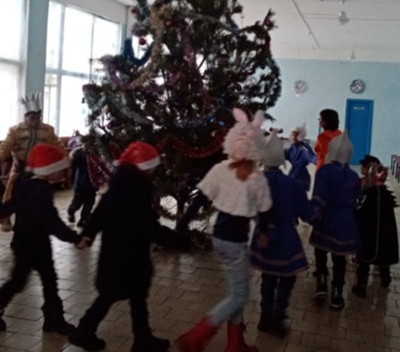 В Алешковском Доме культуры с ребятами мы и рядились и пели и играли в русские народные игры "Гуси - Лебеди", "Салки" и водили хоровод вокруг праздничной ёлки.