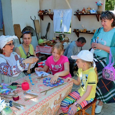 На главной аллее парка работали различные площадки, одной из главных была интерактивная площадка «Один день в Петровской деревне», где была воссоздана атмосфера крестьянского быта. Свой уголок крестьянского быта петровского времени представила делегация из Терновского района под руководством руководителя отдела культуры Колмаковой Н.В. На нашем подворье происходила наглядная демонстрация одного дня из жизни крестьянской семьи. Гости фестиваля с удовольствием наблюдали за тем, как люди петровского времени гладили, изготавливали пуховые изделия, вырезали ложки, ремонтировали лошадиные сбруи, изготавливали продукты питания, шили и вязали. Особым успехом не только у детей, но и взрослых пользовался мастер-класс по изготовлению обережных кукол, который проводила Екатерина Ишутина.