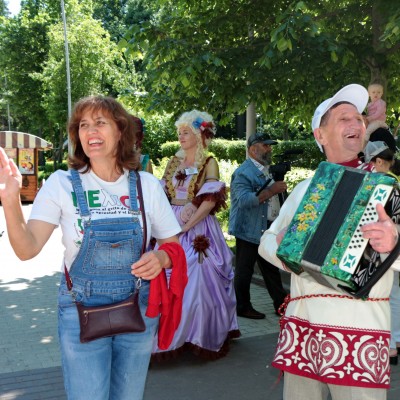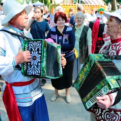 На площадке «Под гармошку и жалейку» выступал наш самобытный гармонист Ковалев Василий Иванович. Благодаря удивительно красивой и задорной игре на гармони, Василий Иванович собрал вокруг себя множество зрителей, которые с удовольствием исполняли знакомые всем песни и плясали под частушки.