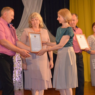 В этом году почетную награду получили супруги Вараксины Алексей Михайлович и Людмила Николаевна и супруги Бражниковы Виктор Евгеньевич и Розалия Павловна из с. Народное.